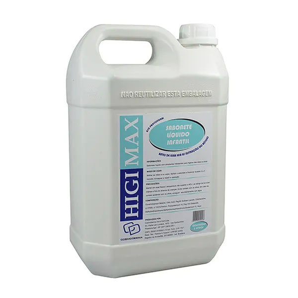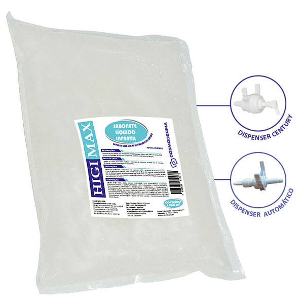 Higimax Sabonete Líquido Infantil loção cremosa infantil de caráter aniônico para corpo e cabelo, especialmente elaborado para a limpeza de crianças e bebês. Foi desenvolvido de acordo com as normas da ANVISA para uso pediátrico.