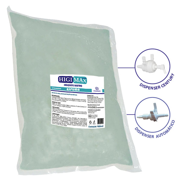 Higimax Sabonete Neutro Espuma é indicado para banho e limpeza diária das mãos e antebraços. Apresentado em forma de espuma, pode ser utilizado em toiletes e sanitários de restaurantes, lanchonetes, colégios, hospitais e entidades ligadas à saúde e alimentação.